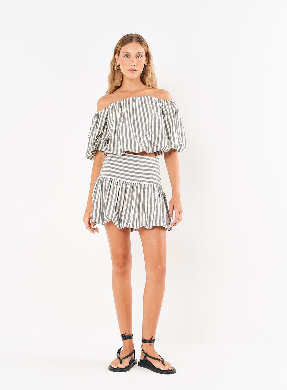 Peça/Look: Saia Linho Listrada Balonê – RIVIERA