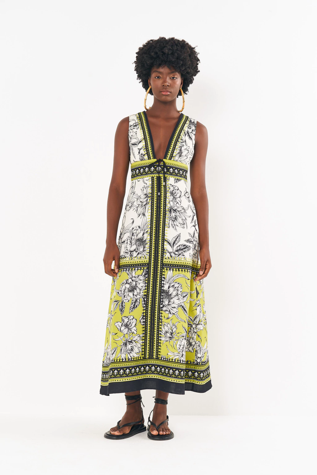 Peça/Look: Vestido Linho Estampado Midi – RIVIERA